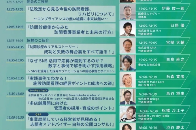 2025年6月21日に行われた 訪問看護シンポジウム&交流会に弊社執行役員の脇坂が登壇しました。 『多店舗展開に向けた管理者の採用・育成のポイント』の...